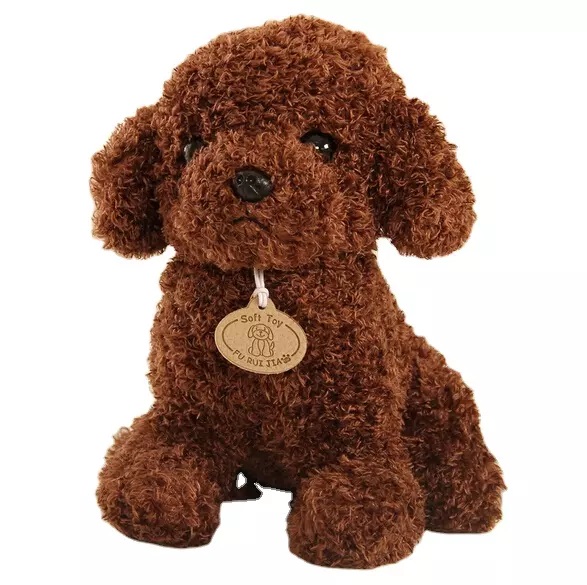 Плюшено куче с медальон Стив е в кафяв цвят.