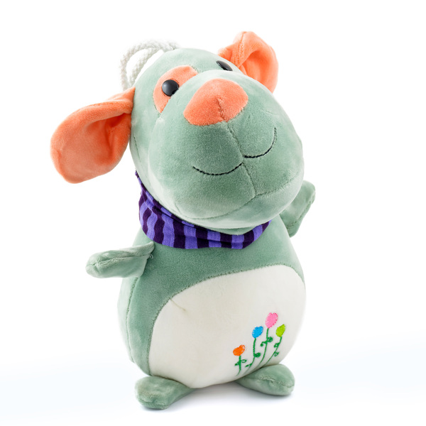 Плюшено кученце с шалче е много меко и подходящо за гушкане от най-малките деца.