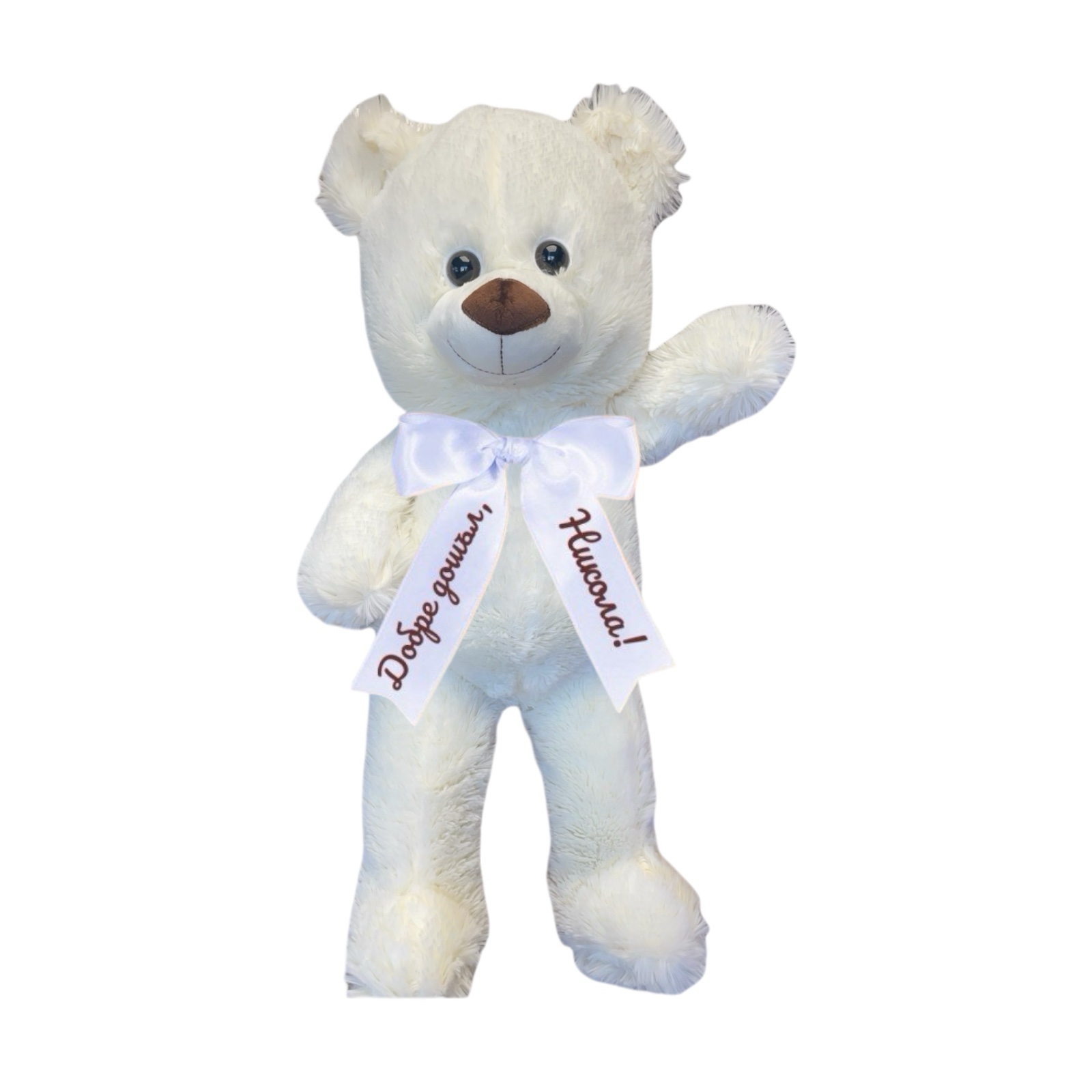 Плюшено мече в екрю с надписана панделка от TeaToys е прекрасно!