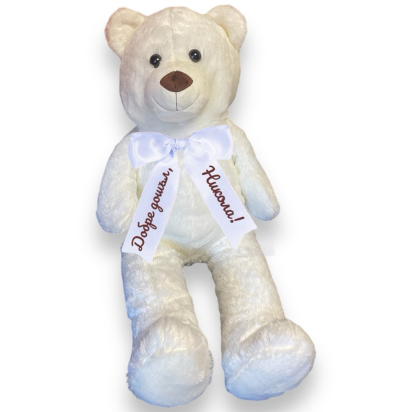 Плюшено мече в екрю с надписана панделка от TeaToys е прекрасно!