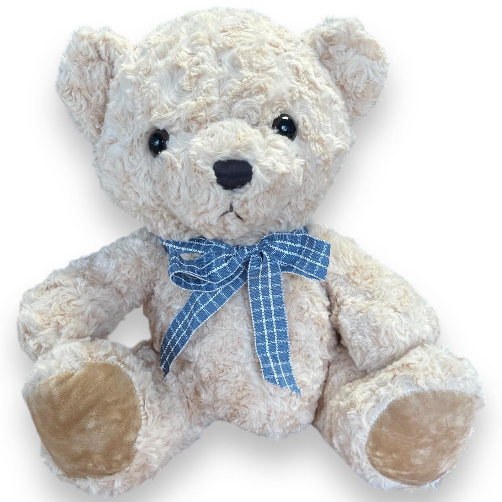 Плюшено мече с карирана панделка, бежаво, 40 см