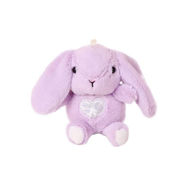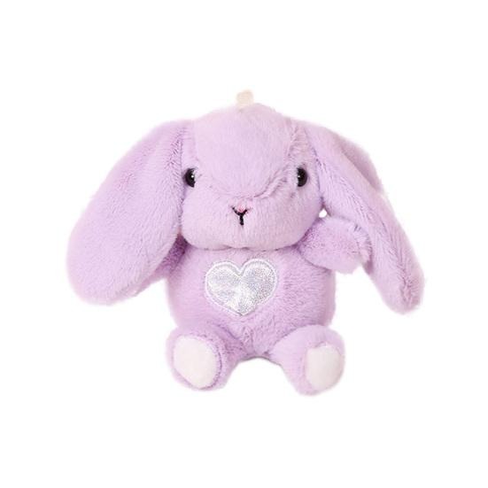 Плюшено зайче със сърчице на ключодържател, лилаво, 16 см