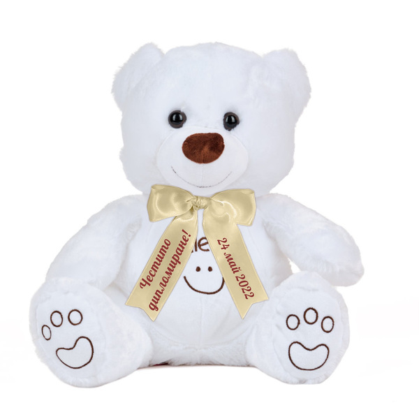 Плюшено мече с надпис Честито дипломиране е нежно и меко на допир.