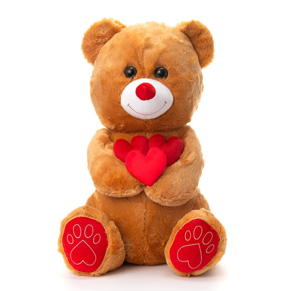 Плюшено мече с три сърца е прекрасен подарък за всеки повод.Изключително красиво и очарователно!Със сигурност ще получите голяма прегръдка!Размер: 65 смСъстав: текстил, пълнеж и багрила безвредни за здравето, 100% полиестер.Отговаря на европейския стандарт за качество EN71.