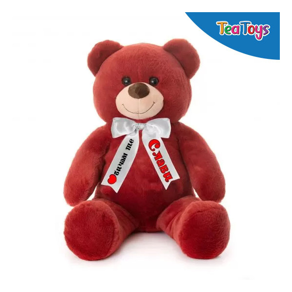 Изработено от висококачествен копринен плюш, плюшено мече в бордо ще плени всеки, докоснал се до него.