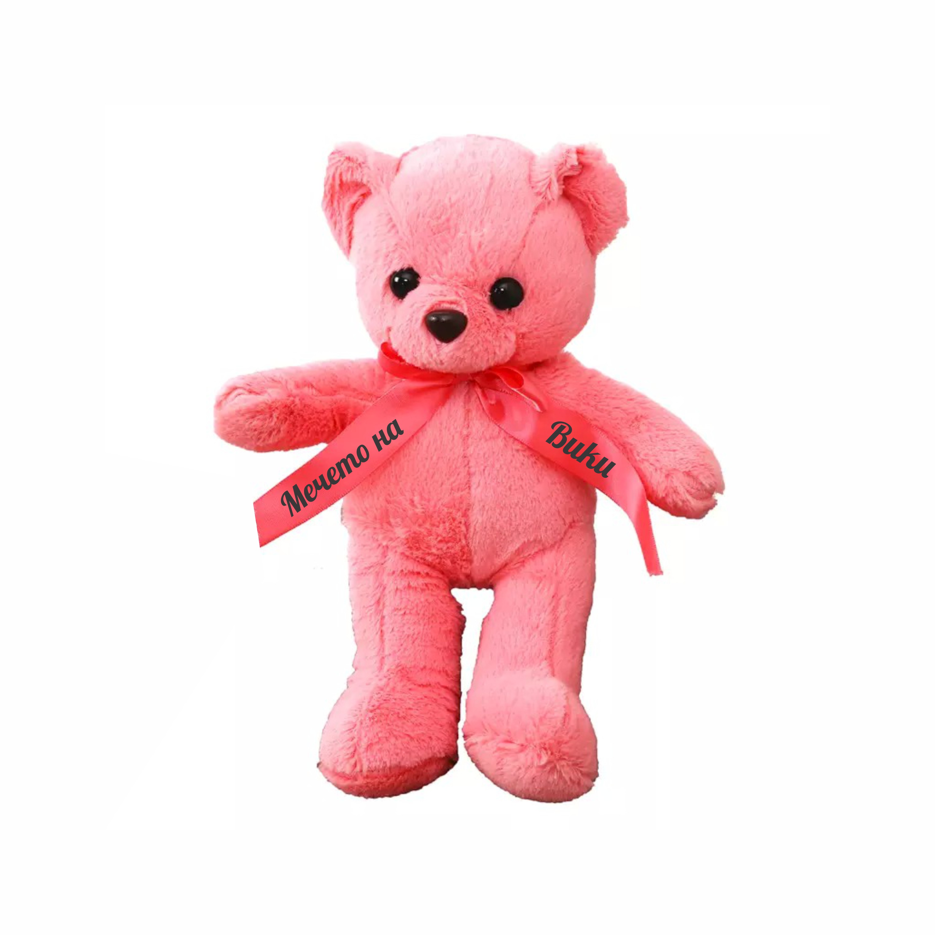 Плюшено мече в розово от Tea Toys е очарователно.Надписът е по избор на клиента.Може да бъде за рожден ден, за имен ден , за кръщене, за влюбени и даже без повод.Изключително нежно и меко на допир.Размер: 30 смСъстав: текстил, пълнеж и багрила безвредни за здравето, 100% полиестер.Отговаря на европейския стандарт за качество EN71.Време за изработка: от 2 до 4 работни дни.