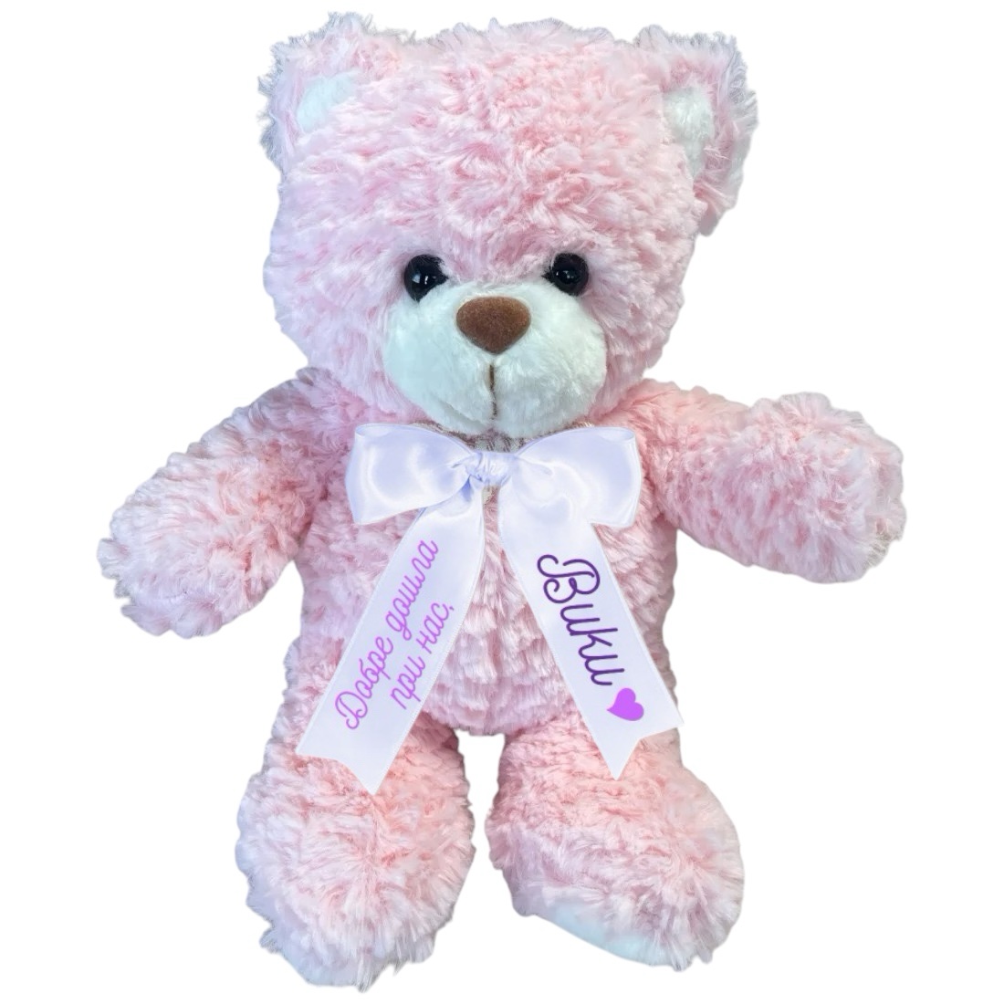 Плюшено мече с надписана панделка, розово от Tea Toys е неустоимо меко и нежно на допир.
