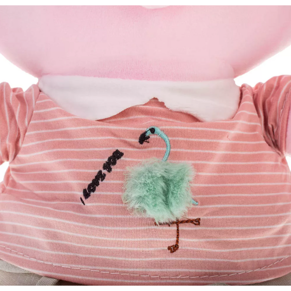Плюшено слонче Филипа с тениска на фламинго е очарователно.Изключително меко и нежно на допир.Неустоимо за гушкане!Размер: 40 см.Състав: текстил, пълнеж и багрила безвредни за здравето, 100% полиестер.Отговаря на европейския стандарт за качество EN71.