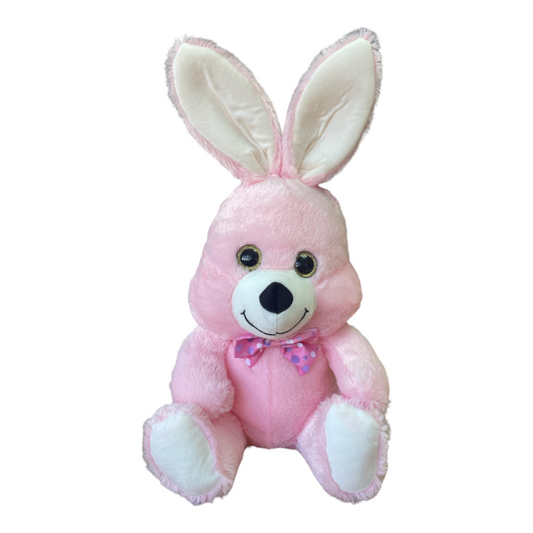 Плюшено зайче с папионка в розово от TeaToys е много меко и подходящо за гушкане.