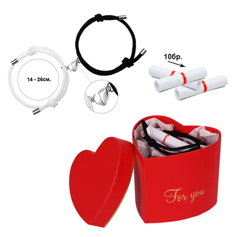 Подаръчен комплект "10 причини да те обичам" с две магнитни гривни "Сърце".
