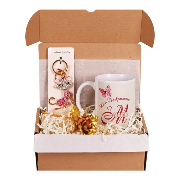 Подаръчен комплект "Честит Празник" /метален ключодържател, чаша и златна роза/.