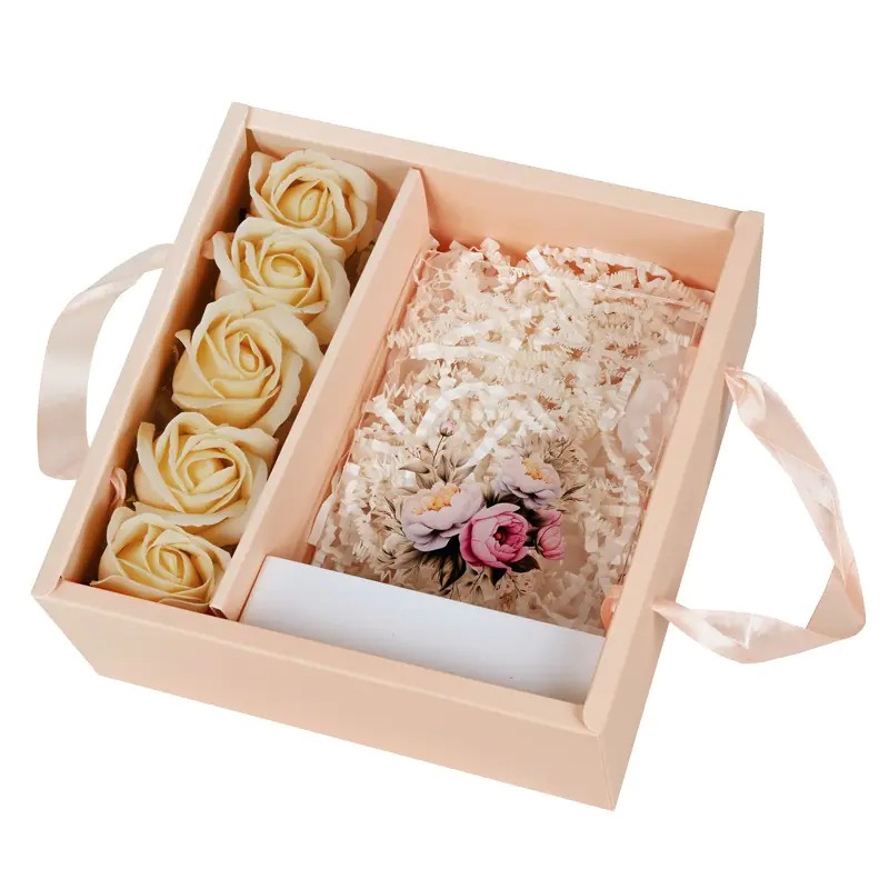 Подаръчен комплект - интериорна 3D - LED лампа с послание и сапунени рози
