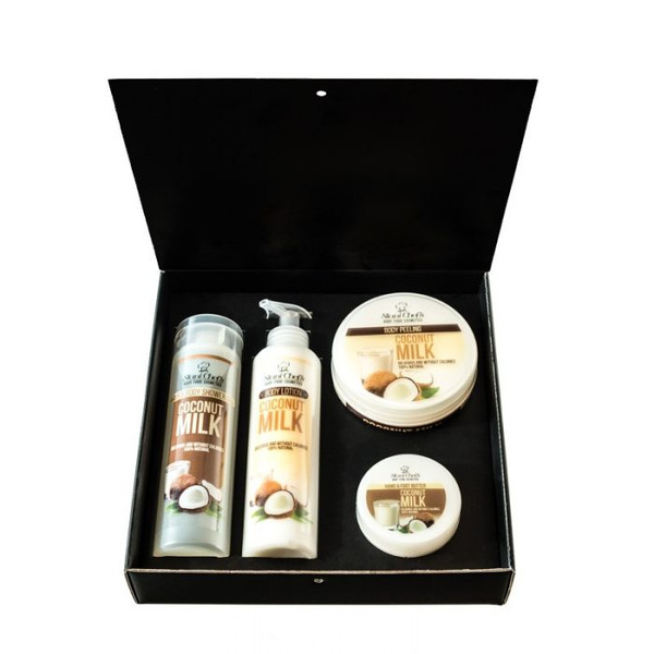Изненадайте малки и големи със специалният семеен подаръчен комплект козметика за тяло! Комплектът включва: 1 (един) Лосион за тяло, 250 мл; 1 (един) Душ гел за коса и тяло, 250 мл; 1 (един) Пилинг за тяло, 250 мл + безплатен подарък 1 (един) Крем - масло за ръце и крака, 100 мл. ПИЛИНГ ЗА ТЯЛО - ще изглади, полира и тонизира кожата ви. Кремообразен, леко разпенващ се на базата на морски соли и масла е едно приятно и полезно душ изживяване. ЛОСИОН - Ще хидратира и успокои кожата, ще я омекоти и ще и даде нужната гладкост и еластичност при допир. ДУШ ГЕЛ ЗА КОСА И ТЯЛО - нежен и измивен крем, който ще се погрижи за чистотата на кожата и косата на всеки член от семейството. КРЕМ ЗА РЪЦЕ И КРАКА - специално разработена формула подходяща за кожата на ръцете и краката - омекотява, подхранва и дълбоко хидратира.
