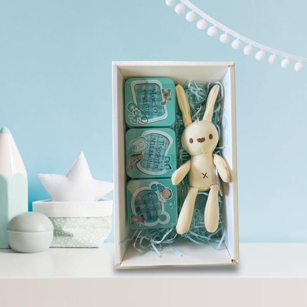 Подаръчен комплект за бебе момче - меко зайче.