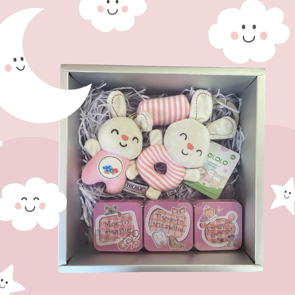 Подаръчен комплект за бебе момиче - Бебешки дрънкалки Зайче