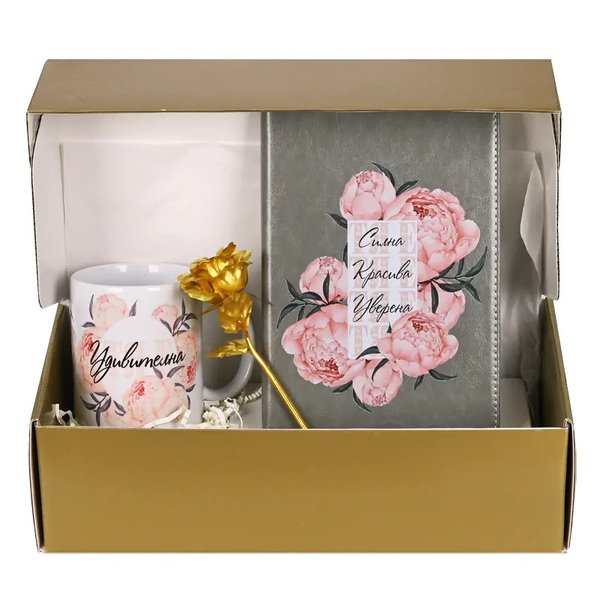 Подаръчен комплект "За Теб" с бележник, чаша и златна роза.