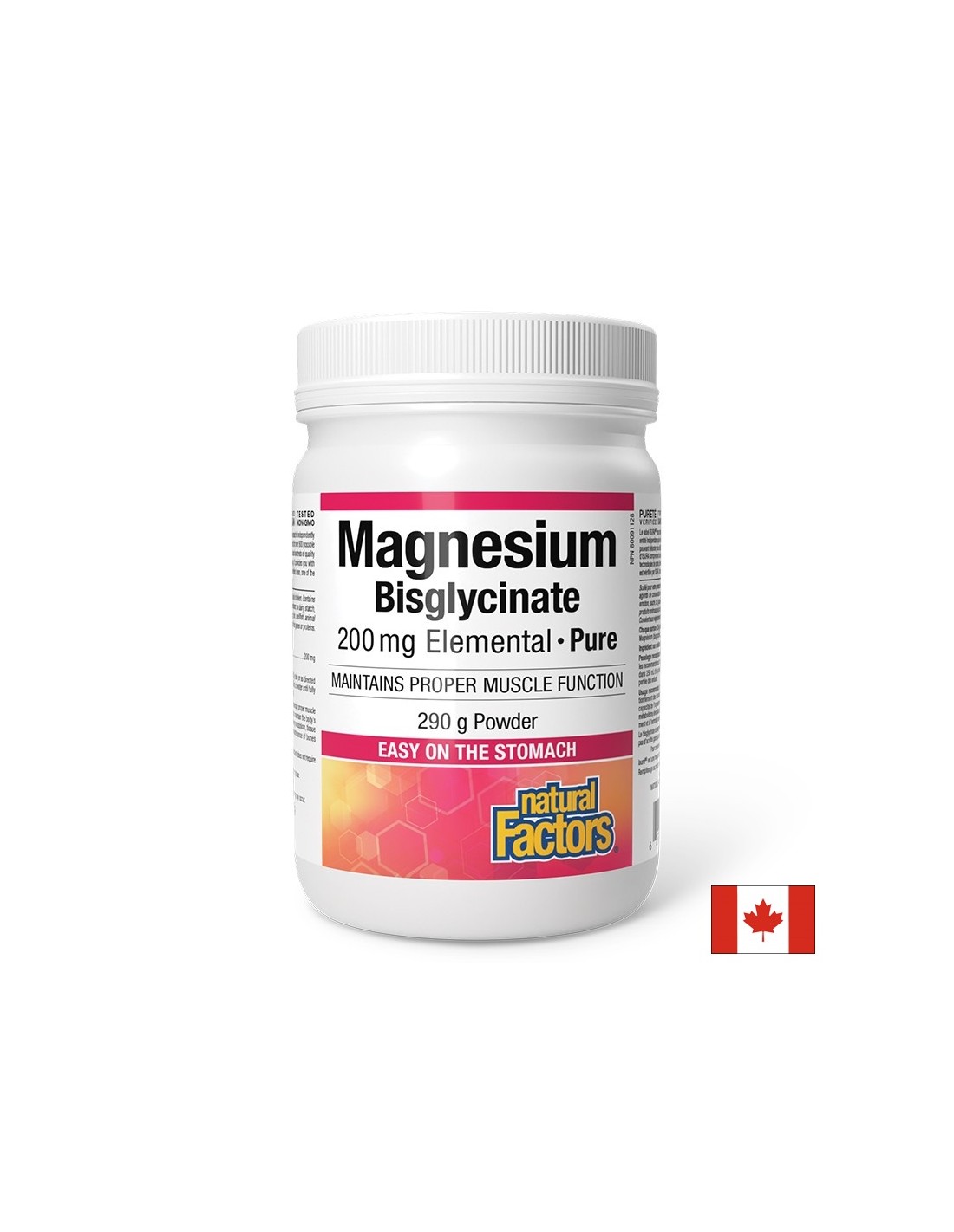 Магнезий (бисглицинат) на Natural Factors осигурява 200 mg от този толкова важен минерал за да подпомогне функцията на мускулите, включително сърдечния мускул, да подобри съня, да успокои ума и да засили метаболизма.