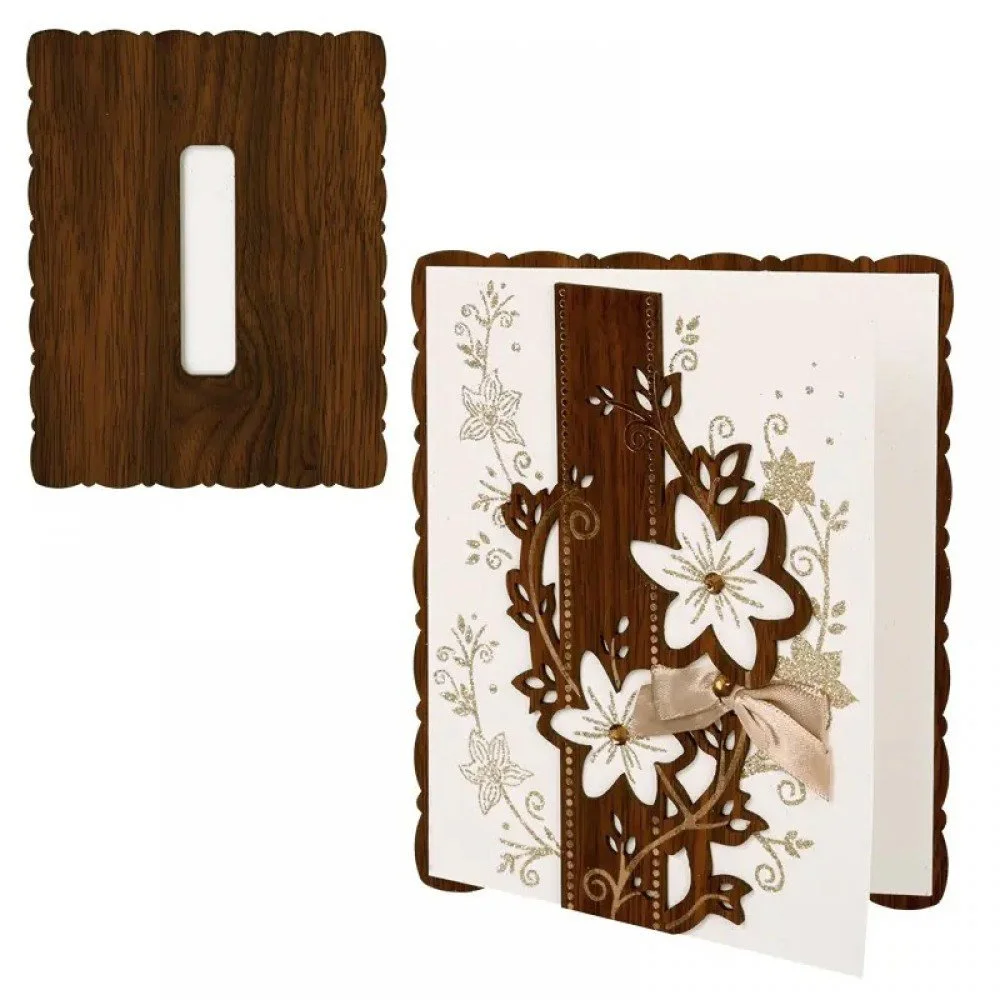 Поздравителна картичка Честито завършване! с релеф и златни орнаменти в картонен плик с дървена рамка.