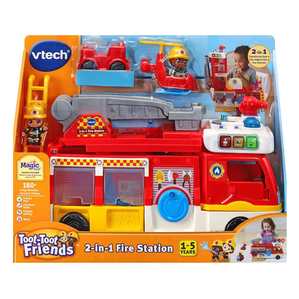 Време е за спасителна акция! Пожарна кола, която може да се трансформира в пожарна станция. Помогнете на свамата пожарникара да спасят хората. Включва няколко режима на игра. Светлини, бутони и подвижни елементи правят играта още по-забавна. Подходящо за деца над 1 година.