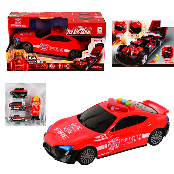 Пожарникарска кола - Контейнер 1:64 с колички 3 броя метални колички и полицай.