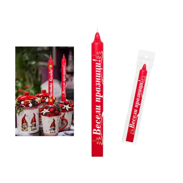 Празнична свещ "Весели Празници!" /надпис от двете трани/.