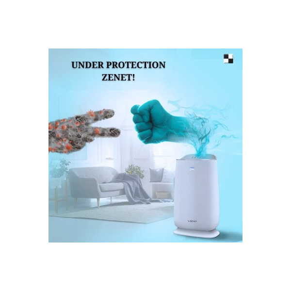 Пречиствателят на въздух Zenet 202 осигурява чист и свеж въздух в помещения до 30 м², премахвайки прах, алергени, бактерии и неприятни миризми. С усъвършенстваната трислойна филтрация с HEPA H13 филтър, който улавя 99,95% от частиците, филтър с активен въглен за премахване на миризми и вредни газове и първичен мрежест филтър за големи частици, Zenet 202 осигурява здравословен въздух. Уредът има 3 режима на работа, включително тих нощен режим и таймер (2-8 ч.). Сензорният панел и цифров дисплей с цветови индикатор за качеството на въздуха улесняват управлението. Ниските нива на шум (30 dBA) го правят подходящ за всяко пространство