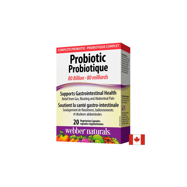 Пробиотик 80 млрд. активни пробиотици на Webber Naturals е високоефективна формула в подкрепа на стомашно-чревния тракт. Този висококачествен продукт съдържа осем специално култивирани пробиотични щама, включително лактобацили, бифидобактерии и педиококи, за подпомагане на нормалната чревна флора и храносмилане. Пробиотикът е чудесно решение при пътуване, тъй като не е необходимо да се съхранява в хладилник.