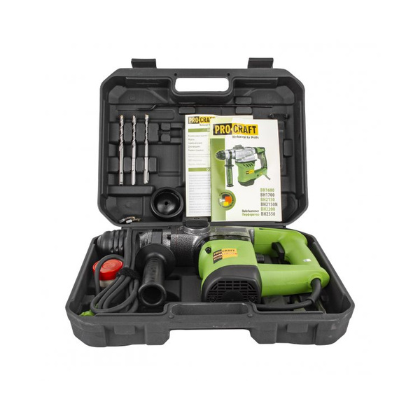 PROCRAFT BH1600M е със захват на инструмента SDS - MAX, мощност 1600 W и сила на удара 9 J. \n \nТехнически характеристики: \nНапрежение: 220 V, 50 Hz \nМощност: 1600 W \nДиаметър на пробиване в дърво: 60 мм \nДиаметър на пробиване в бетон: 40 мм \nДиаметър на пробиване в стомана: 15 мм \nСила на удара: 9 J \nБрой удари: 3850 уд./мин. \nОбороти: 550 об./мин.