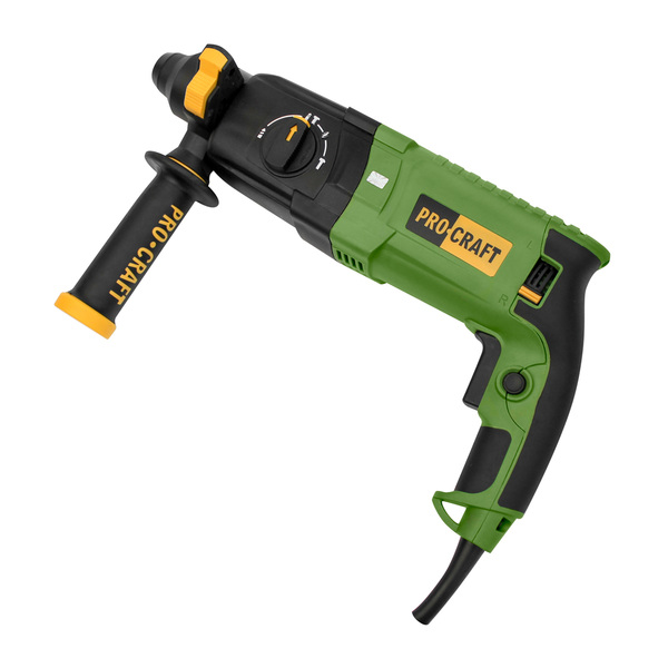 Технически характеристики: \nКонсумирана мощност: 900 В \nНоминално напрежение: 220 V, 50 Hz \nОбороти на празен ход (об./мин.): 0-1100 \nЧестота на ударите (уд./мин.): 5300 \nСила на удара: 3.2 J \nТип захващане: SDS-Plus \nДиапазон на пробиване - бетон: 26 мм \nТегло: 3,2 кг