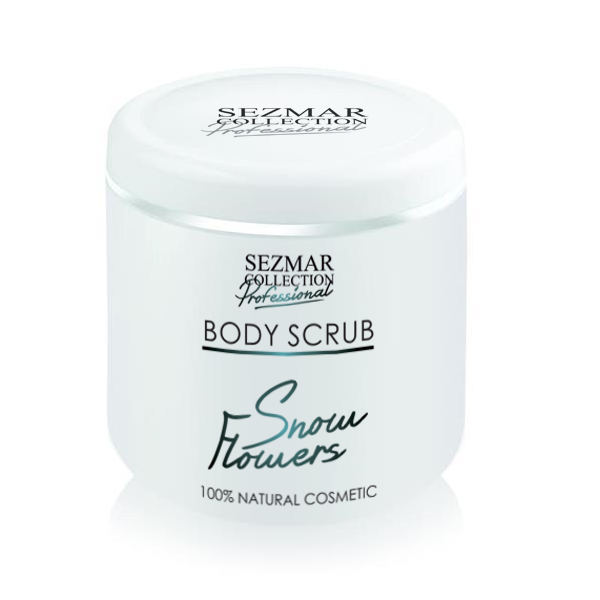 Натурален ексфолиращ скраб. Скраб за тяло СНЕЖНИ ЦВЕТЯ е специално разработен с морски соли и специално подбрани масла, които напомнят чистота, снежна белота и които ще регенерират кожата и събуди сетивата. Действие: Нежно ексфолира и отстранява горния слой мъртви кожни клетки. Спомага за стимулирането на микроциркулацията на кожата. Професионална употреба. Употреба: Нанесете на суха и чиста кожа с масажни движения. Лесно се отстранява с топли, влажни кърпи. INCI: GRAPE SEED OIL, SHEA BUTTER, SODIUM CHLORIDE, GINGER EXTRACT, ORRIS EXTRACT , IRIS FLORENTINE EXTRACT , AZULEN