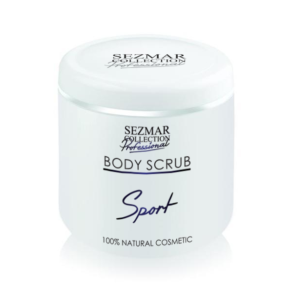 Скраб за тяло СПОРТ е специално разработена комбинация от морски соли и етерични масла, която успокоява, изглажда и енергизира кожата. Действие: Нежно ексфолира и отстранява горния слой мъртви кожни клетки. Спомага за стимулирането на микроциркулацията на кожата. Професионална употреба. Употреба: Нанесете на суха и чиста кожа с масажни движения. Лесно се отстранява с топли, влажни кърпи. INCI: GRAPPE SEED OIL, SHEA BUTTER, SODIUM CHLORIDE, MENTHA PIPERITHA EXTRACT, JUNIPERUS COMMUNIS, ROSMARINUS OFFICINALIS, SALVIA OFFICINALIS, LAVANDULA ANGUSTIFOLIA, PROPOLYS