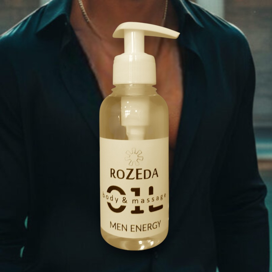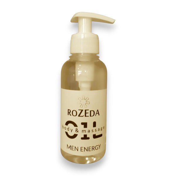 Масажното масло „Мъжка енергия“ е професионално масажно масло с балансирана формула, съчетаваща база от минерално масло с подхранващи растителни масла и деликатен ароматен профил. Основата съдържа още 100% натурални растителни масла, богати на есенциални мастни киселини (омега-6 и омега-9) - масло от Гроздови семки, Сусамово масло, масло от Жожоба, както и вит. Е. Тези съставки допринасят за подхранване, хидратиране и подобряване на еластичността на кожата. Подходящ за всички типове кожа, включително суха и чувствителна.