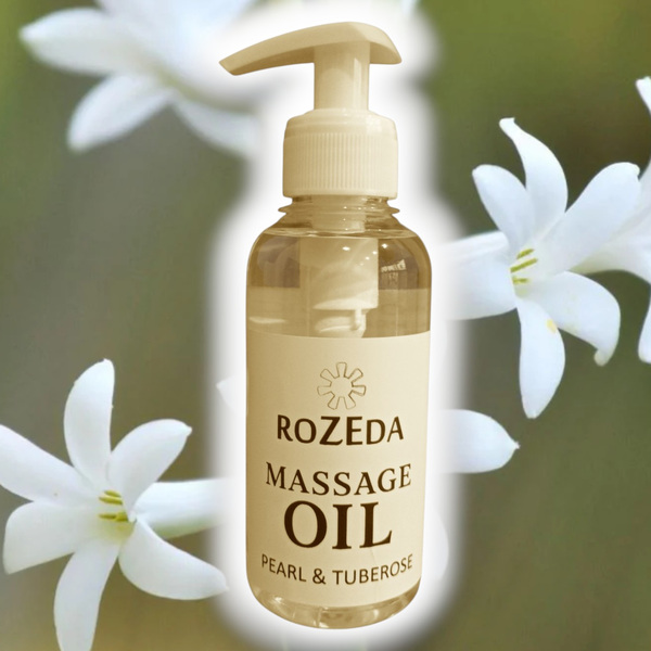 Масажното масло „Перла и Тубероза“ е професионално масажно масло с балансирана формула, съчетаваща база от минерално масло с подхранващи растителни масла и деликатен ароматен профил. Основата съдържа още 100% натурални растителни масла, богати на есенциални мастни киселини (омега-6 и омега-9) - масло от Гроздови семки, Сусамово масло, масло от Жожоба, както и вит. Е. Тези съставки допринасят за подхранване, хидратиране и подобряване на еластичността на кожата. Подходящ за всички типове кожа, включително суха и чувствителна.