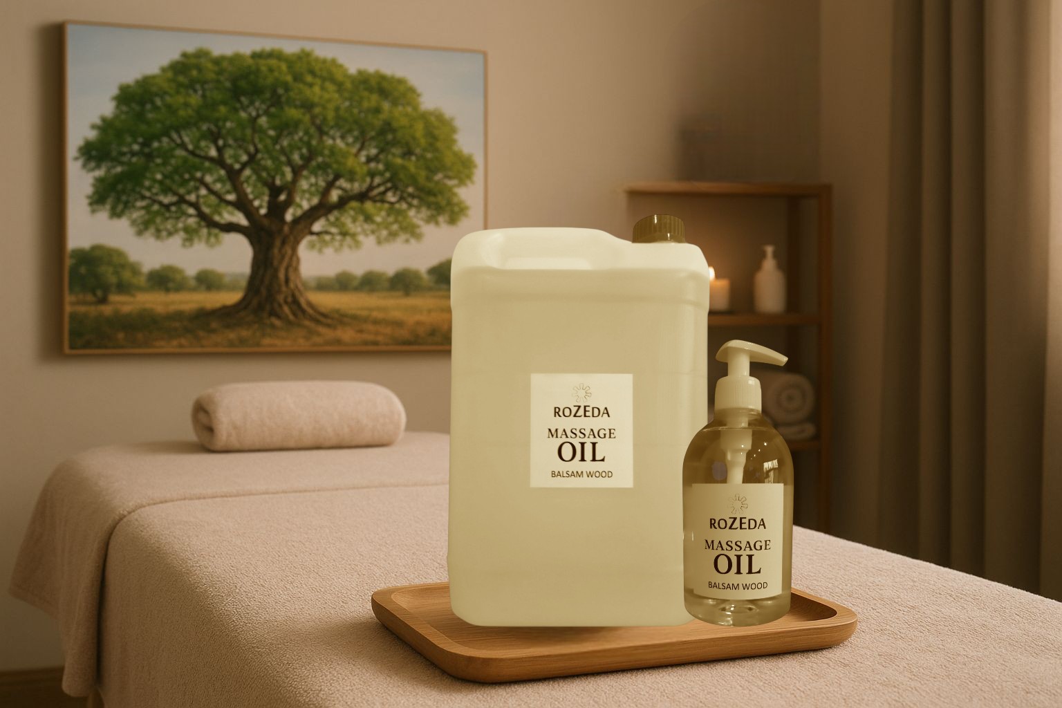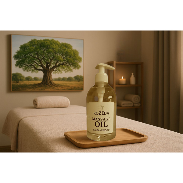 Масажното масло „Балсамово дърво“ е професионално масажно масло с балансирана формула, съчетаваща база от минерално масло с подхранващи растителни масла и деликатен ароматен профил. Основата съдържа още 100% натурални растителни масла, богати на есенциални мастни киселини (омега-6 и омега-9) - масло от Гроздови семки, Сусамово масло, масло от Жожоба, както и вит. Е. Тези съставки допринасят за подхранване, хидратиране и подобряване на еластичността на кожата. Подходящ за всички типове кожа, включително суха и чувствителна.