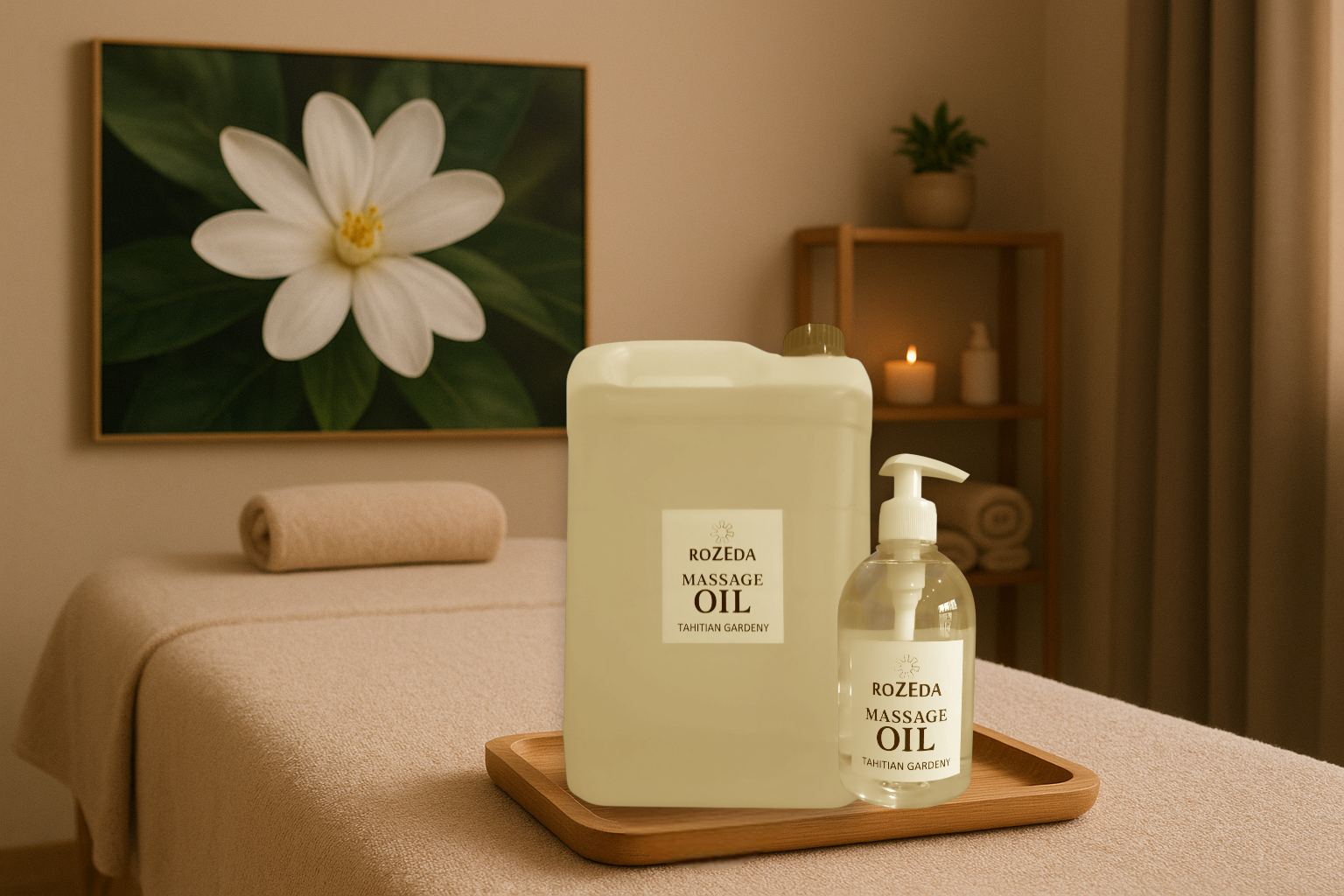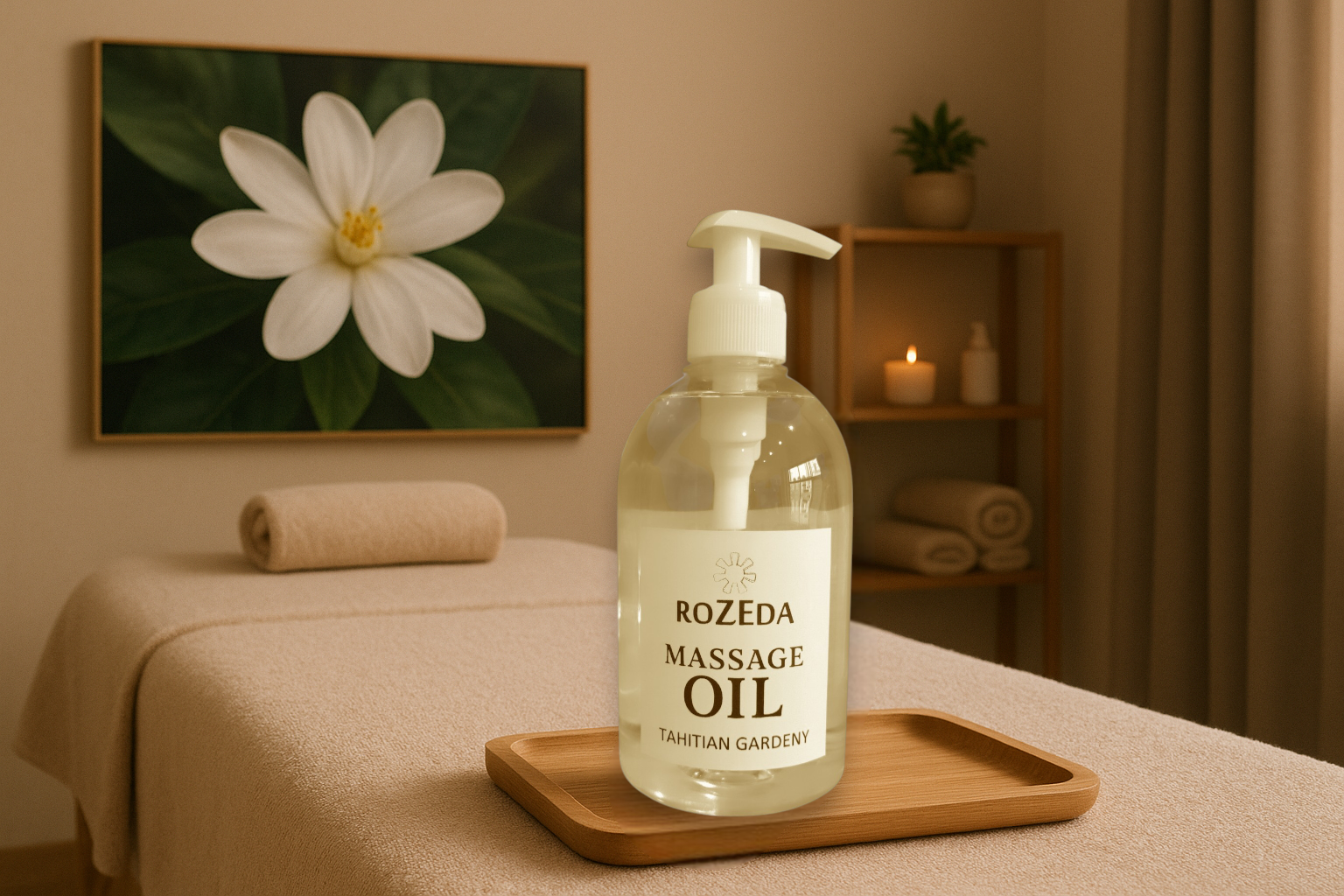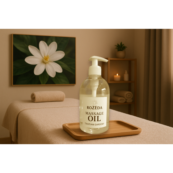 Масажното масло „Таитянска гардения“ е професионално масажно масло с балансирана формула, съчетаваща база от минерално масло с подхранващи растителни масла и деликатен ароматен профил. Основата съдържа още 100% натурални растителни масла, богати на есенциални мастни киселини (омега-6 и омега-9) - масло от Гроздови семки, Сусамово масло, масло от Жожоба, както и вит. Е. Тези съставки допринасят за подхранване, хидратиране и подобряване на еластичността на кожата. Подходящ за всички типове кожа, включително суха и чувствителна