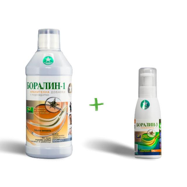Комплектът се състои от 1 бутилка Боралин-1 + 1 флакон Боралин-3 гел (100 гр.)