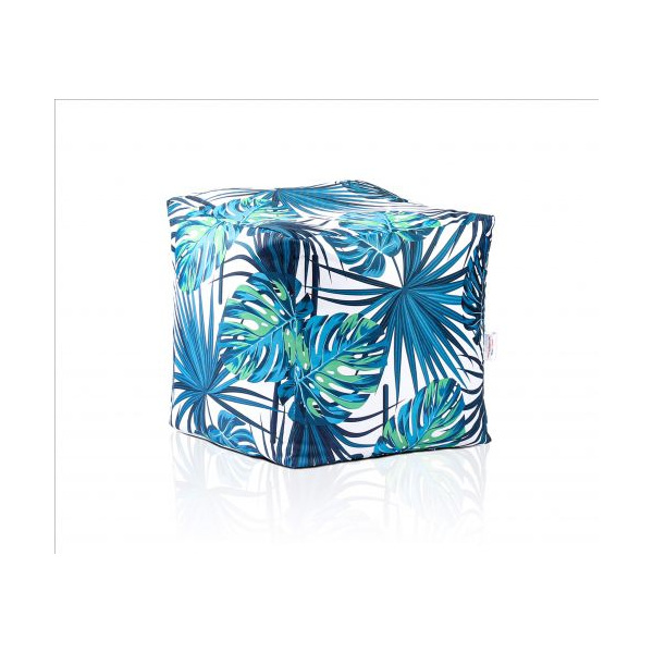 Пуф, 80л., Табуретка Куб - Tropical Leaves, Перящ се калъф, Водоустойчив, Пълнеж от Полистиролни перли, принт