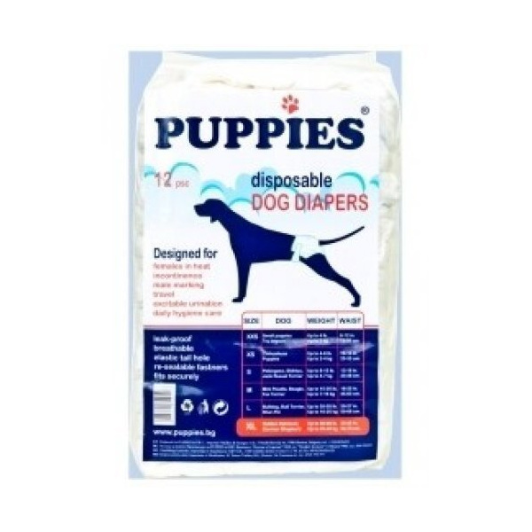 Puppies XL - памперс-гащи за кучета с тегло 25-40 кг. и талия 63-76 см. 12 броя