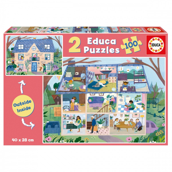 Пъзел, Educa, Отвътре/Отвън, Къща, 2 х 100 части