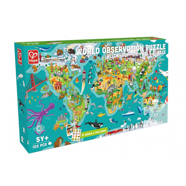 Пъзел и игра 2 в 1, Hape, Световна обиколка, 105 части