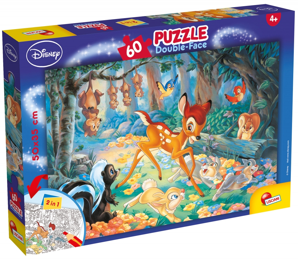 Пъзел, Lisciani, Disney, Бамби, Двулицев пъзел 60 части