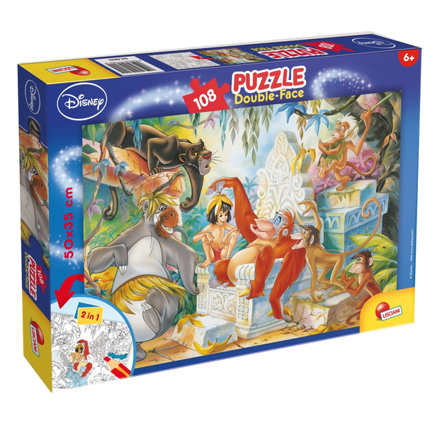Пъзел, Lisciani, Disney, Книга за джунглата, Двулицев пъзел 108 части