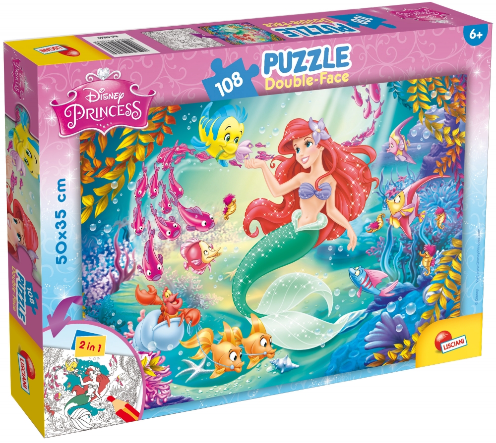 Пъзел, Lisciani, Disney Princess, Ариел, Двулицев пъзел 108 части
