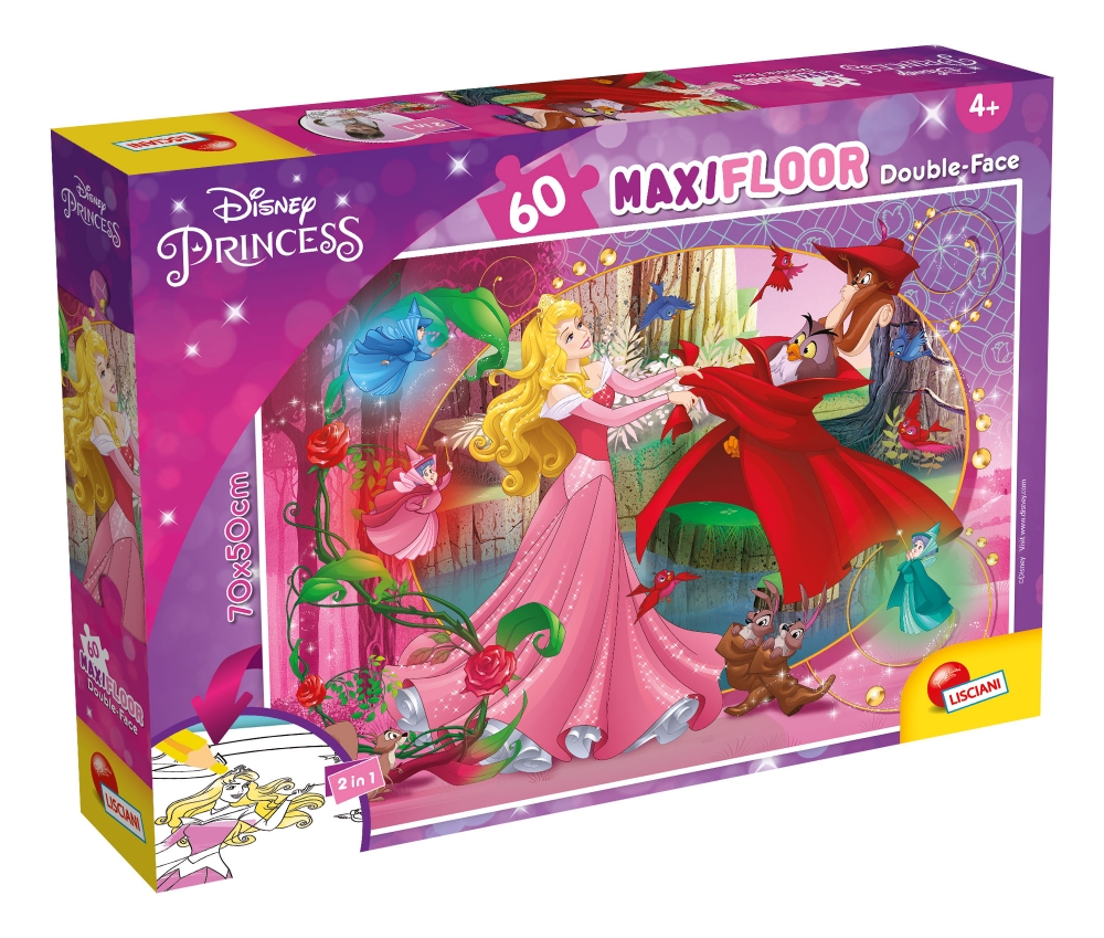Пъзел, Lisciani, Disney Princess, Спящата красавица Аурора, Двулицев пъзел 60 части