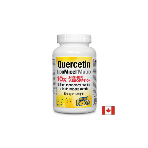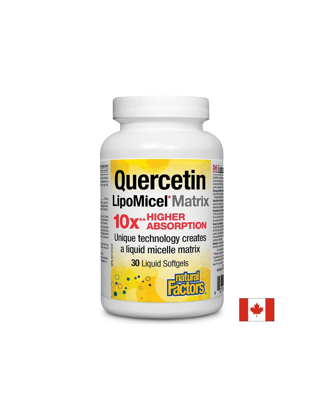 Стандартните форми на кверцетин могат да бъдат трудни за усвояване от организма, което от своя страна намалява ефективността му. Кверцетин 250 mg LipoMicel Matrix 10 X Higher Absorption на Natural Factors е произведен чрез уникалната патентована технология LipoMicel, която спомага да се преодолее тази ниска бионаличност чрез създаване на течна мицелна матрица, която разпръсква кверцетина на малки микрокапчици. По този начин е с 10 пъти по-висока абсорбция от стандартните форми.