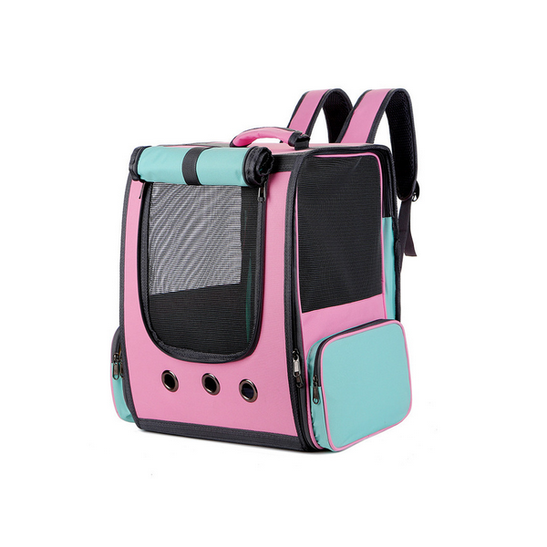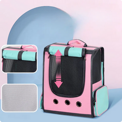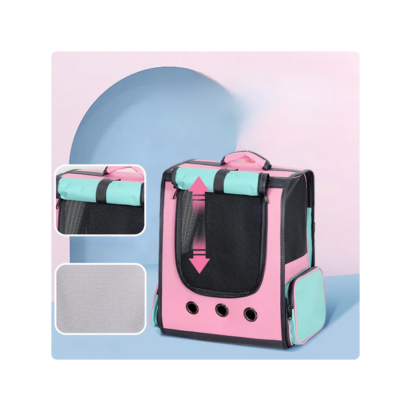 Лека, голяма и удобна раница за разходка на вашия домашен любимец.С просторно вътрешно пространство, раницата осигурява удобен мобилен дом за вашия космат приятел. 3D дизайнът повишава чуството на сигурност, и успокоява любимецът ви, а с навиващата се завеса му гарантирате уютно лично пространство , по този начин ще намалите стреса от външата среда.Трите мрежи, разположени отпред , и от двете страни на раницата, плюс трите вентилационни отвора под предната мрежа, позволяват на любимеца да диша винаги чист въздух, без да се чувства задушно или неудобно.Снабдена със здрава дръжка , и регулируеми презрамки, раницата е лесна за носене, а дъното в проектирано с подложки против хлъзгане.