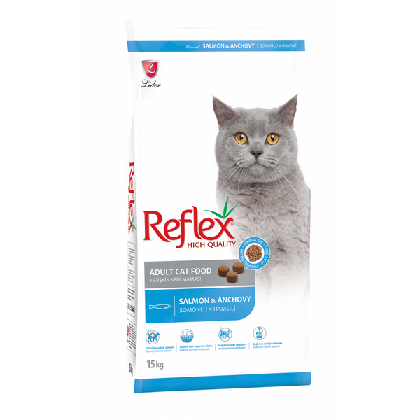 Пълноценна храна за израснали котки от всички породи със сьомга и аншоа.