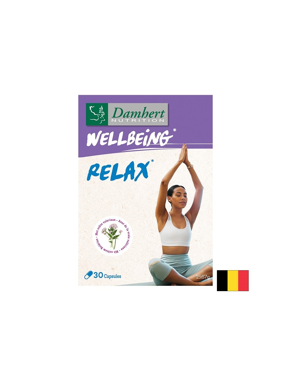 Wellbeing Relax / Релакс формула (с валериана, хмел и пасифлора), 30 капсули е хранителна добавка на белгийската компания Damhert. Продуктът подпомага релаксацията и нормалното функциониране на нервната система. Формулата е създадена от белгийската компания Damhert, която е известна с производството на висококачествени натурални добавки. Продуктът комбинира три мощни активни съставки – валериана, хмел и пасифлора. Тази комбинация е създадена, за да осигури естествено облекчение от стреса и да подпомогне здравословния сън.
