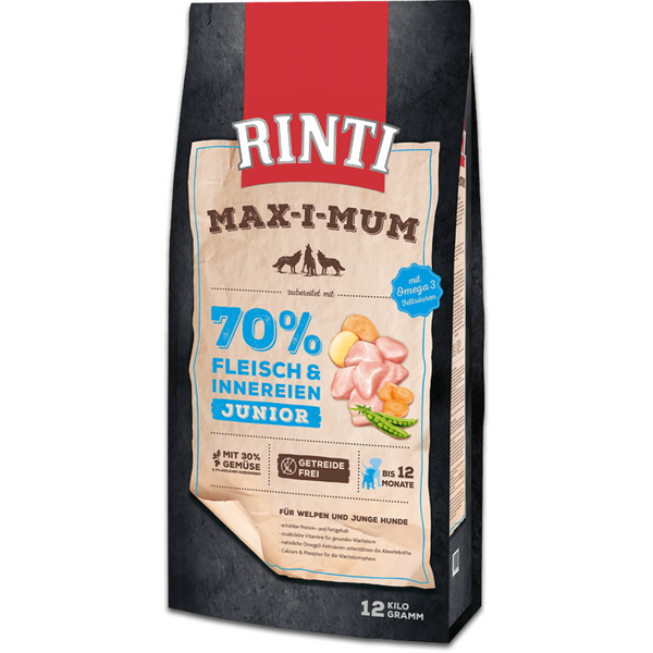 Rinti Max-i-mum Junior е специално разработен за млади кучета и е подходяща като пълноценна храна за всеки ден.
