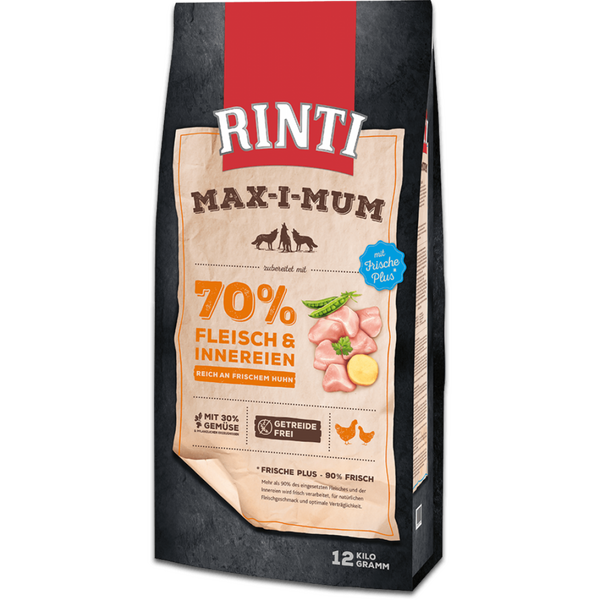 Rinti Max-i-Mum се прави с 65% прясно месо и пресни карантии.